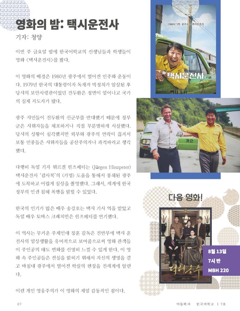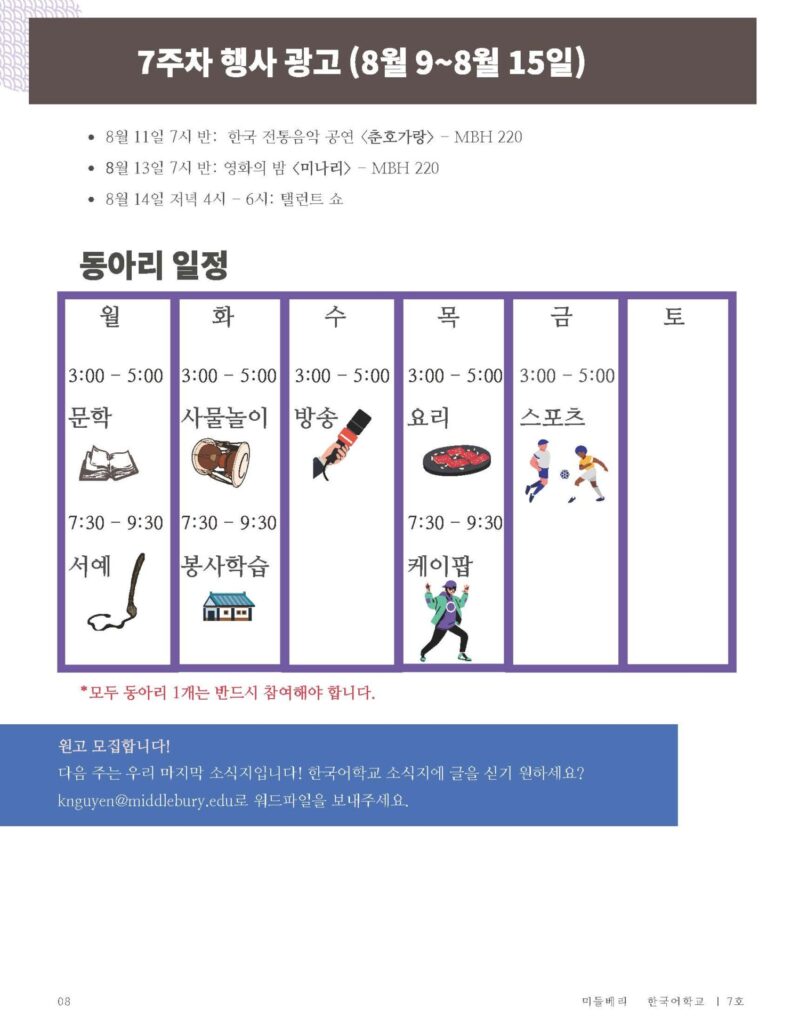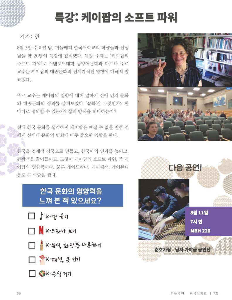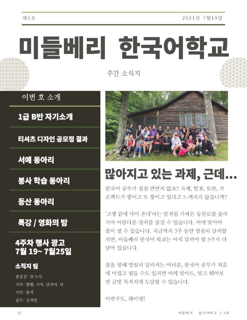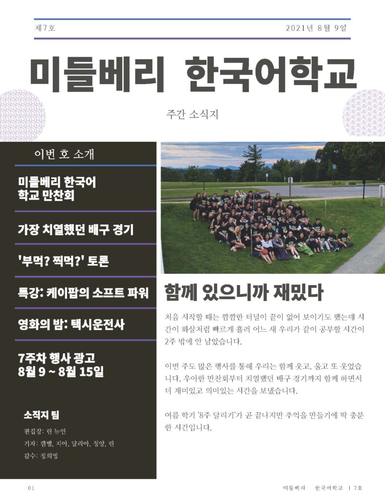 As Editor in Chief of the School of Korean Broadcasting & Journalism Club (wow that was a mouthful!), I was in charge of creating, writing, and editing the weekly Korean newsletter for our 60 students and teachers.